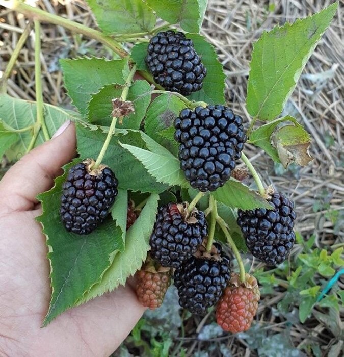Плоды черного цвета, конусообразной формы, крупные. Средний вес ягод 9-10 гр., максимальный – 20 гр. Вкус мякоти – сладкий с легкой кислинкой. Кожица – глянцевая, упругая. Ежевика хорошо переносит аккуратную транспортировку на небольшие расстояния. Подходит для продажи, употребления в свежем виде, замораживания, заготовок на зиму.