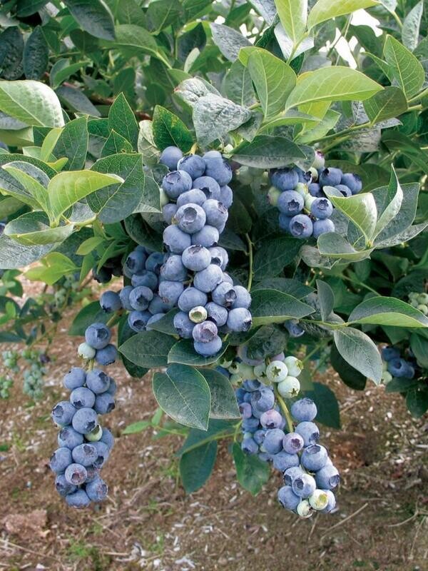 Цветы голубики белые со слабым зеленым оттенком. Плодовая кисть средняя, прямая, неопушенная. Ягоды формируются и спеют гроздьями.