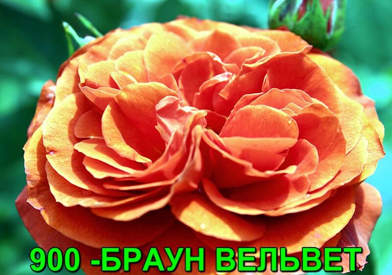 Цветки этой великолепной оранжевой флорибунды имеют ясно различимый коричневый оттенок в прохладную погоду. Лепестки к центру более желтые, но коричневая окраска, когда она проявляется, очень впечатляет. Цветки хороших размеров, махровые, с волнистыми лепестками. Появляются в кистях до 12 шт (осенью иногда более). У Brown Velvet необычно темная и блестящая листва, обычно устойчивая к заболеваниям. Куст довольно сильнорослый, но невысокий.
