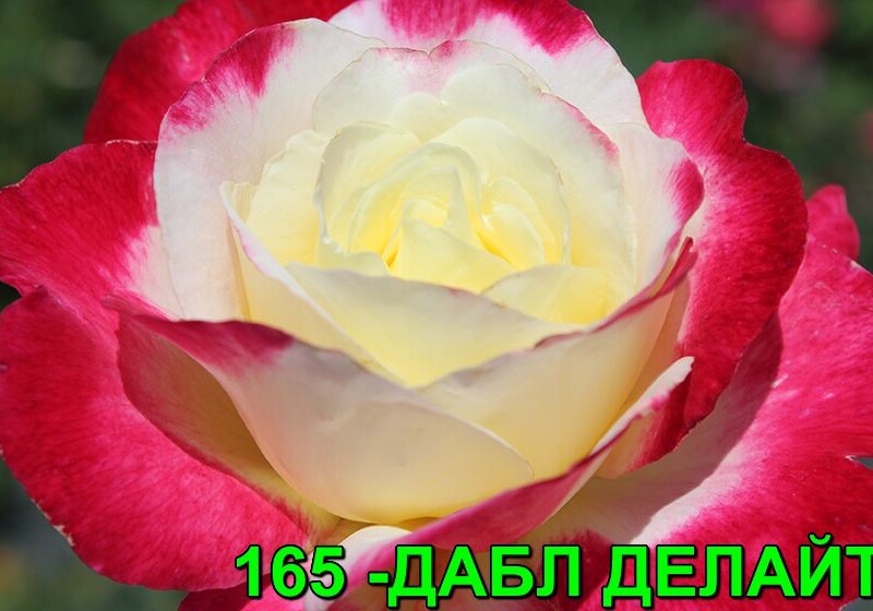 Double Delight – одна из самых хорошо известных и широко распространенных современных роз в мире. Никто не знает, относится ли ее имя к контрастирующим цветам, или «двойное удовольствие» это цвет и запах. Раскрывающийся бутон идеальной классической формы, медленно распускается. Долго стоит в срезке. Цветки вначале кремово-белые, с красным только на внешних лепестках, но по мере распускания малиновая окраска расширяется, особенно в жаркую погоду. Результат – потрясающий контраст слоев ярко-малиновых внешних лепестков и кремово-белого центра. Цветки очень крупные, появляются обычно по одному, редко по 2-3, на длинных, жестких, колючих побегах. Листва крупная, темно-зеленая, куст прямостоячий, но более ветвистый, и имеет лучшую форму куста, чем большинство чайно-гибридных роз. Сорт очень легок в выращивании, хотя и не исключено появление черной пятнистости или мучнистой росы.