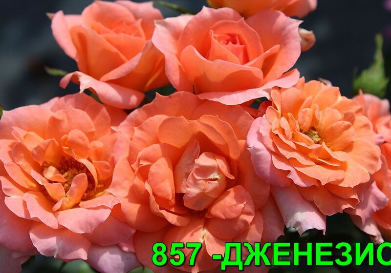 Цветки лососево-оранжевого цвета с абрикосовыми оттенками из 17-25 лепестков. Куст аккуратный, густой, округлой формы. Длительное цветение.