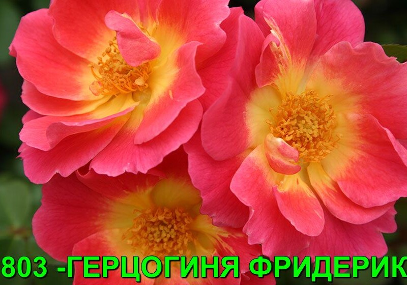 Цветки полумахровые, лососево-розовые, с желтым центром, 5-6 см в диаметре. Сорт отличается красивой игрой окраски. Куст ветвистый, быстро растет.