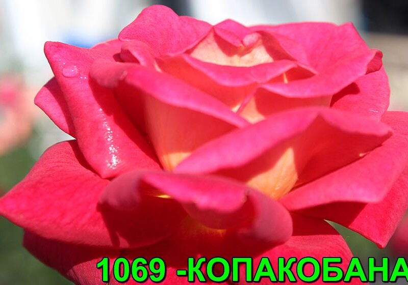 Цветки одиночные, диаметром 12-13 см, великолепной продолговатой формы с высоким центром, махровые (40 лепестков), двухцветные. Снаружи лепестки от серно-жёлтых до белых, внутри – пламенно-красные, бархатные. Цветение повторное, с июня до заморозков. Аромат малины, очень хороший. Кусты прямостоячие, высотой 90-110 см, шириной 50 см. Листва полуглянцевая, тёмно-зелёная, плотная, устойчивая к заболеваниям. Великолепная роза для флористического оформления. В срезке стоит 7-10 дней. Рекомендуется для групповых и одиночных посадок.