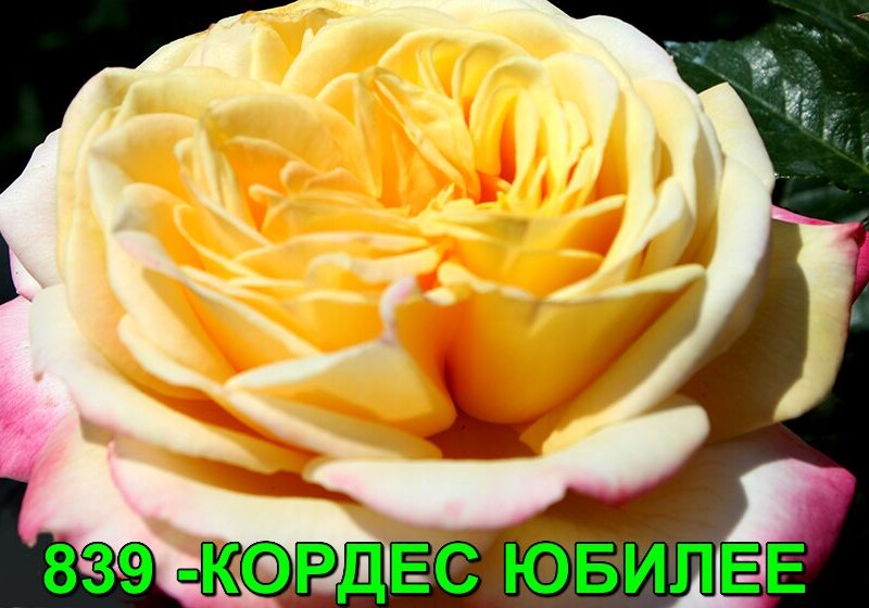 Густо-махровые цветки, с плотно набитой серединкой - желтые с ярко-розовыми или красными крайними лепестками. Цвет желтый с красными краями. Интенсивный аромат с нотками ванили, гелиотропа и жасмина. Куст высокий, прямостоячий, с крепкими побегами.