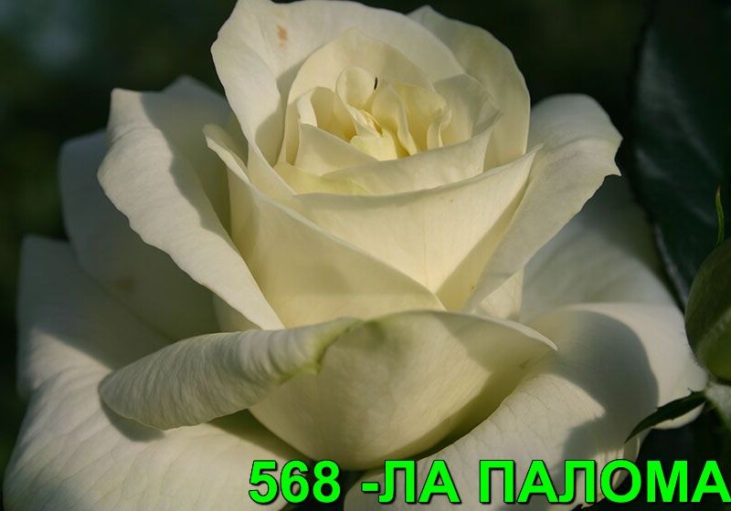 La Paloma 85 - красивая белая флорибунда, бутоны элегантные, как у чайногибридной розы, появляются по одному или в небольших кистях. Раскрываются медленно, долго держат форму. Цветки вначале кремового цвета, с лимонным центром, позднее чисто белые. Осеннее цветение больше напоминают флорибунду – кисти крупнее (до 9 цветов), цветки мельче. Листва темная, блестящая, куст ветвистый, сильный. Очень здоровое и обильноцветущее растение, цветки хорошо переносят дождь