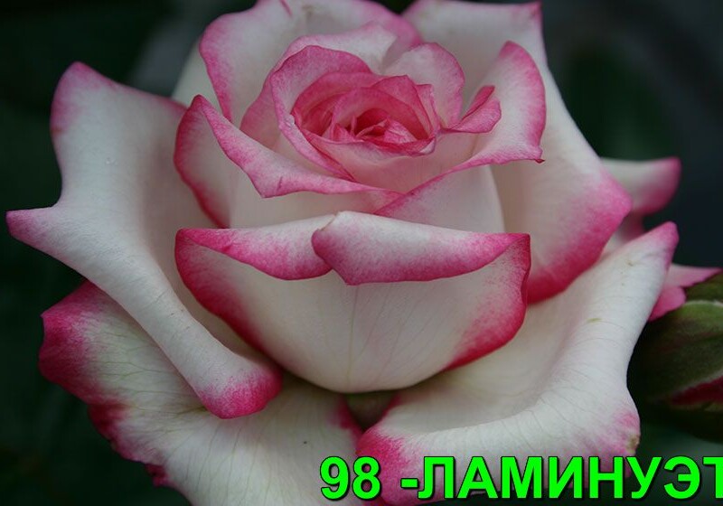 Сорт Laminuette относится к группе розы Флорибунда. Цветки диаметром 9 см, махровые (17-25 см), бело-розовые с красной каймой, долго стоят в срезке, долго не увядают на кусте. Цветение повторное, до заморозков. Листва глянцевая тёмно-зелёная, устойчивая к заболеваниям.