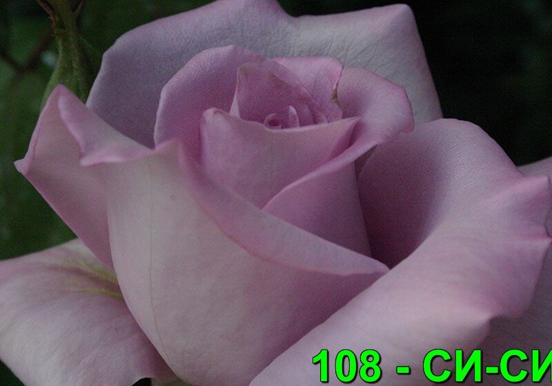 Роза чайно-гибридная Си-Си. Куст прямой, высокий, 100-120 см. Цветки крупные, диаметром 9-11 см, махровые, окраска сиреневая. Имеет очень душистый аромат. Цветет с июня по сентябрь. Местоположение - солнце. Требовательна к почве, хорошо растет на богатой гумусом, суглинистой, воздухопроницаемой, влагоемкой, слабокислой почве. Сорт устойчив к болезням и зимостоек. Используется для озеленения и на срезку.